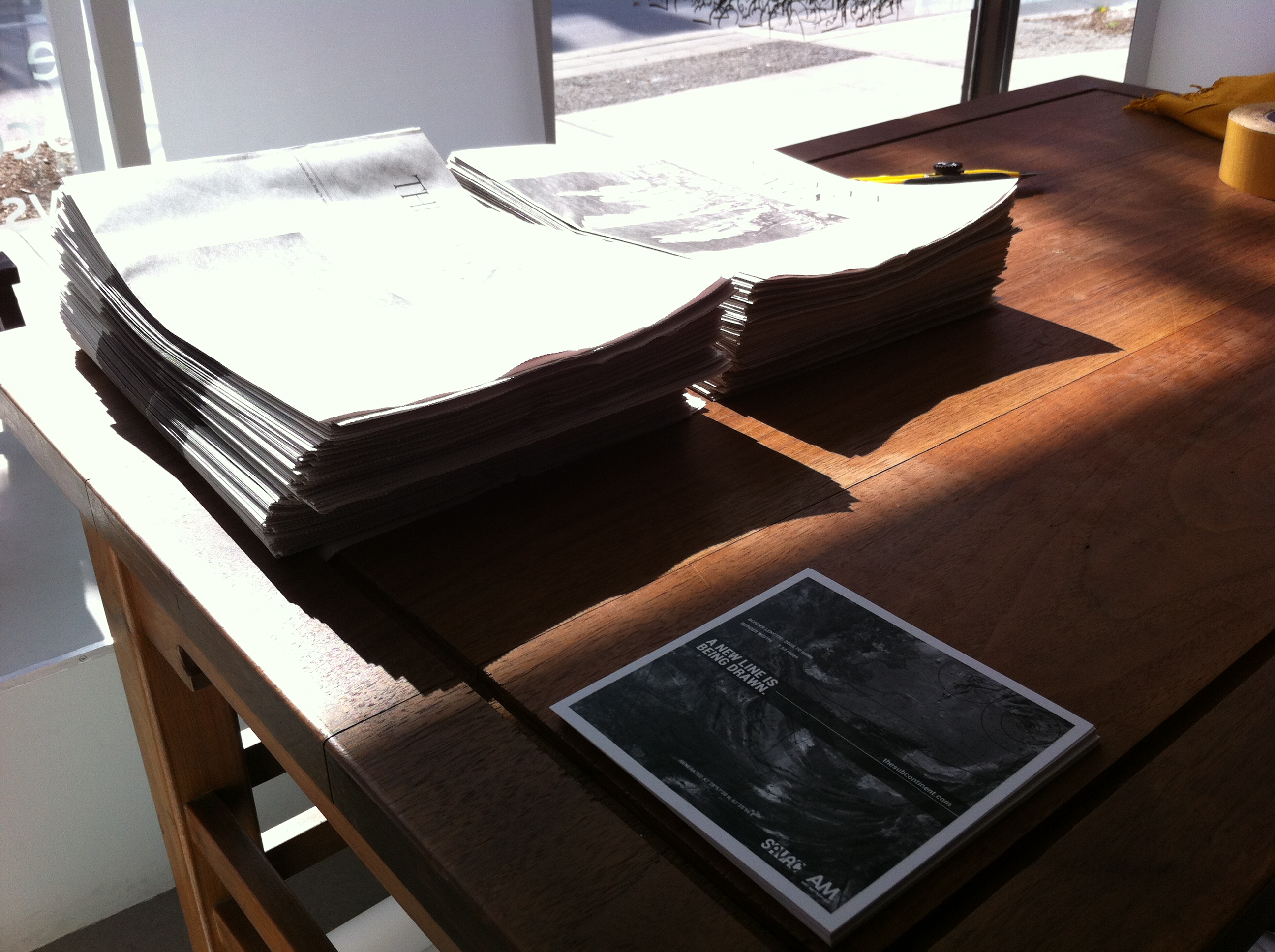 Presented at SAVAC in Toronto, the project assembled ideas and networks around a constructed archival document that has been found in the year 2013. The (fictive) document will demand that the borders of the subcontinent be revised in the 67th year (2014) on the basis of natural resources within the region. Based on the idea of sharing natural resources the re-drawn border within the sub-continent, once again introduces a divide between land, communities and people.